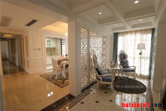 半开放式的厨房设计,开放式的餐厅空间设计,增加了餐厅与厨房的面积,也让家居显得宽敞明亮不拘束。白色木质结构沙发,银色雕花配饰装饰,提升了家居格调,也增加了家居品味。精致的餐具,精美的烛台,无一不体现着欧美风情的浪漫与典雅,以白色为主的家居色调,也在一定程度上增加了家居空间,营造出了开敞通透、温馨浪漫的生活环境。