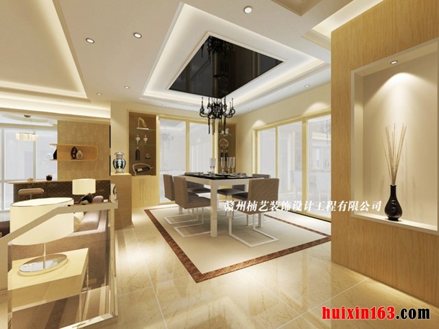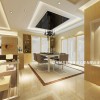 本案在就家居做装修设计时,对餐厅与客厅间做了一个阶梯式的过渡设计,让家居看上去更具有层次感,沙发后面既是餐厅,透明玻璃矮墙设计,既可以是沙发背景墙,也可以是阶梯围栏,在划分空间区域的同时,不影响整体美感与光线流通性。餐厅设计简约大方。黑色钢化玻璃餐厅吊顶中装饰,与周围形成明显反差,经典的黑白配色,时尚优雅。造型简约且富有创意的餐椅,采用现代时尚表现手法设计,既美观又很实用。白色木质结构框架黑色钢化玻璃餐桌面设计,与吊顶相互照应,看上去更显和谐。较为开放的空间结构设计,最大限度的将空间的优点呈现了出来,删繁就简的设计理念,造就出了温馨舒适、简洁宽敞的家居环境。