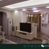 半墙电视背景墙设计,淡绿色墙纸装饰,既是电视背景墙,也是吧台,闲来无事或者在书房看书学习疲劳时,再次品品茶,休息休息,也是一件很惬意的事。半开放式的空间结构设计,不仅可使空间看上去宽敞通透,也增加了空间连贯性。台阶设计,将客厅与书房巧妙的分隔开,不仅起到了过渡作用,且不同颜色地板与不等高的设计,也体现出了一定的层次感。整个家居设计简约中不失典雅,温馨浪漫且清新大气。