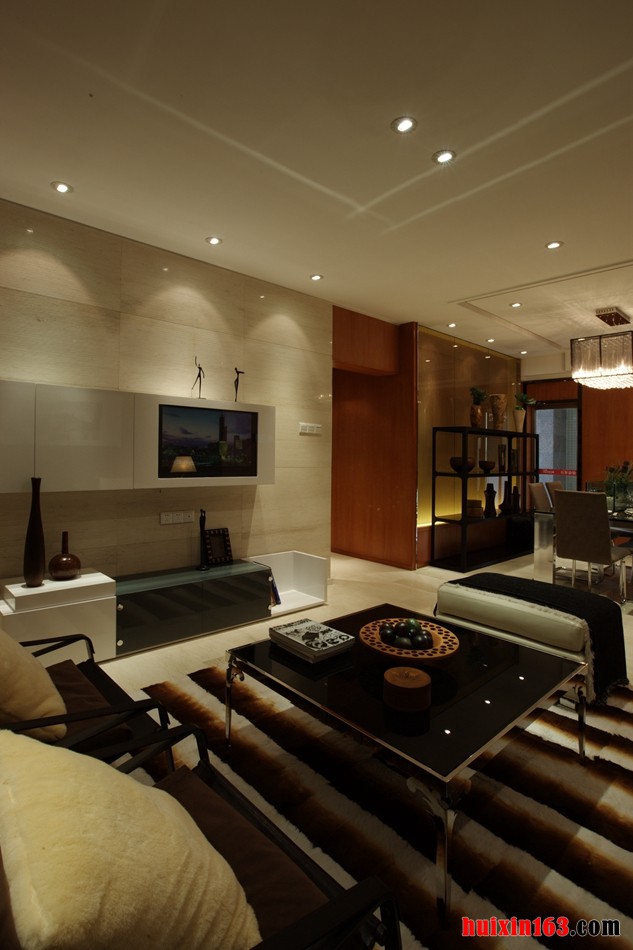 本案家居以米黄、咖色及白色为主,适当黑色点缀,既能完美调和家居整体的艺术色彩,让人轻松找到平衡点与立体感,也可通过鲜明的颜色反差,深与浅的颜色互补,来体现现代简约风格特点,颜色大多选用纯色,部分花纹搭配,设计上删繁就简,合理利用灯光所营造出的艺术效果来装扮家居,既可以免去复杂的装饰,让家居看上去更显宽敞明亮,也可节省装修开支。