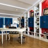 白色总能给人洁净明亮的感觉,室内多些白颜色,可以起到延伸视觉空间效果的目的。本案家居定位为地中海风格,除了纯洁的白色,蓝色自然少不了,蓝与白的搭配,是地中海风格的重要元素之一。木龙骨吊顶,白色刷涂,给人干净整洁之感,白色铁艺烤漆烛台式水晶灯悬吊与客厅吊顶上,零星射灯点缀,整体感觉华美优雅。罗马柱装饰沙发背景墙,顶部拱形设计,辅以圆形浮雕装饰,墙面中央意境唯美的地中海地区风景画装饰,画风真实自然,好似实景一般,细细欣赏,会情不自禁的感觉眼前不是一幅画,更像是一扇小窗,画中的美丽景致就在窗外,近在咫尺,感觉是那样的美好与惬意。白色布艺沙发,简单的黑色线条将沙发的大致轮廓勾勒了出来,将沙发的立体感突显了出来,颜色图案各异的靠枕双视,质地柔软的棉布,看着就给人舒适优柔的感觉。刷涂有白漆的木结构框架沙发椅,宝蓝色搭配,干净利落,蓝色花纹坐垫及靠背设计,蓝白相间的条纹靠枕装饰,沙发椅造型优雅,线条柔婉与顺直兼并,符合家居整体设计风格,也与茶几及沙发搭配的恰当和谐。仿古砖及地砖拼花地板设计,花纹方块地毯过渡,不同深浅的蓝色搭配,带个家居轻松与舒畅之感。