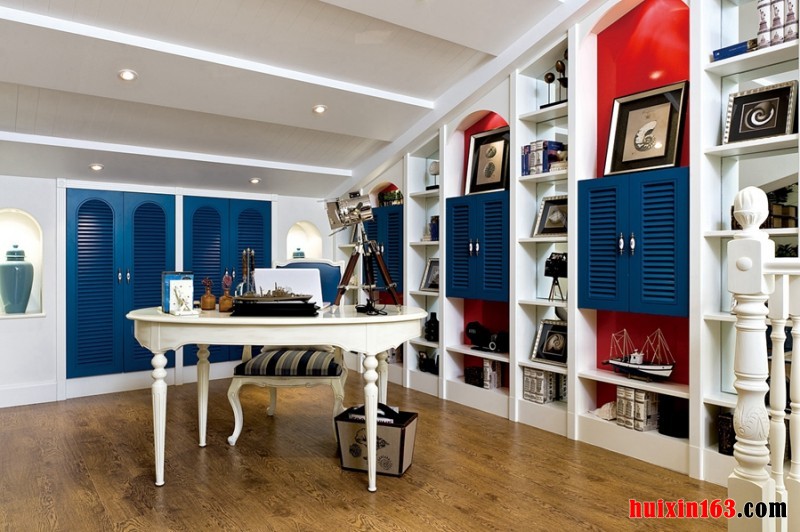 鹭江新城-271平米-别墅-地中海风格装修效果图--书房