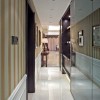 就美式风格而言,宽大舒适是美式风格的特点,美国人喜欢有历史感的东西,正因如此,美式风格的家居要求不仅要能给人带来自在感与贵气感,历史感与文化感也是不可缺少的。而两种感觉,用质地自然地实木木材来表现是再合适不过的了。本案采用一体式胡桃木电视柜,既有电视柜的功能,又有置物柜的功能,同时带有背景墙,整体划一,古感立体,沉稳庄重且实用性很强。凹位造型吊顶设计,石膏线装饰,增加了客厅层次感。造型简约却不乏美感的烛台式铁艺烤漆吊顶悬挂在客厅吊顶中央,金色的灯身在明亮的灯光照射下金光闪闪,给人以华美富丽的感觉。石膏装饰工艺打造的电视背景墙,金色花边画框装裱的挂画置于沙发背景墙上,金色雕花饰品装饰墙面,两边各有一个铁艺墙壁灯搭配,整个沙发背景墙设计,造型对称,简洁优雅、艺术韵味浓厚。条纹印花布艺沙发,花纹、质地各异的靠枕装饰,看上去不仅柔软舒适,还给人高雅端庄之感。白色地砖铺地,干净整洁,一尘不染,精美绣花地毯过渡,胡桃木茶几,滚边设计,透明玻璃桌面,优雅的雕刻,充分体现出了美式家具的特点,保留古典家居的色泽与质感,透明玻璃的加入,又在古典中融入了现代元素,呈现出了多姿多彩的古典家具,古雅别致。